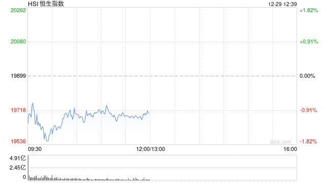 12月29日消息,美股周三收跌,交投清淡。今日开盘,港股恒指低开1.26%。截至午间收盘,恒生指数跌1.12%,报19675.85点;国企指数跌1.56%,红筹指数跌1.29%。