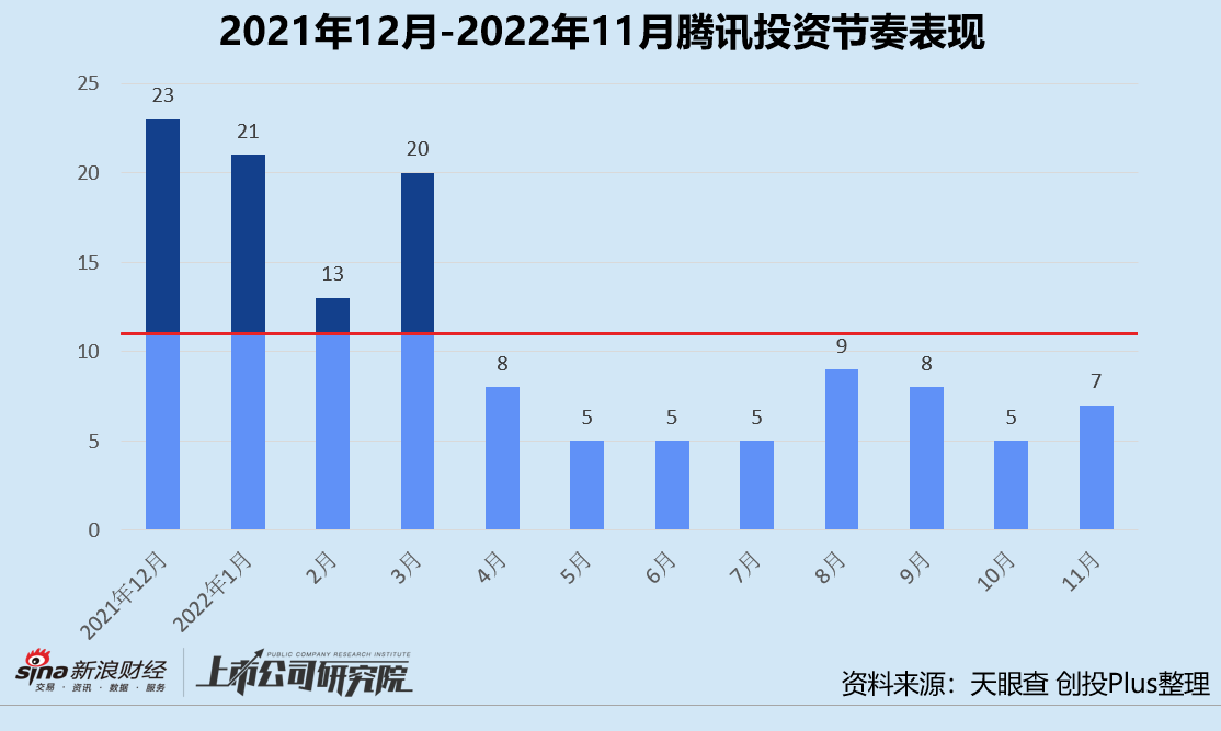 统计区间内,腾讯公开披露的股权投资事件共129起,同比下降41.9%,自第二季度开始投资节奏放缓。
