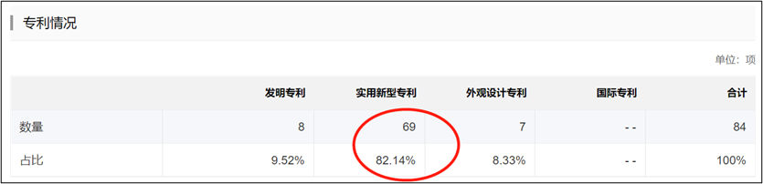 我们进一步发现,公司大部分专利以实用型专利为主,技术含量较高的发明专利较少。数据显示,公司的发明专利数量为8,占比为9.52%;而实用型及外观涉及专利数量占比超90%。