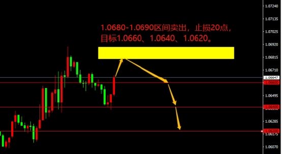 1.0680-1.0690区间卖出,止损20点,目标1.0660、1.0640、1.0620。