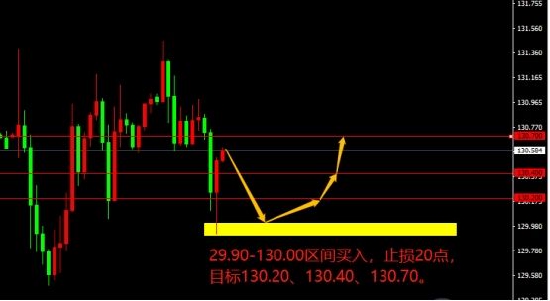 129.90-130.00区间买入,止损20点,目标130.20、130.40、130.70。