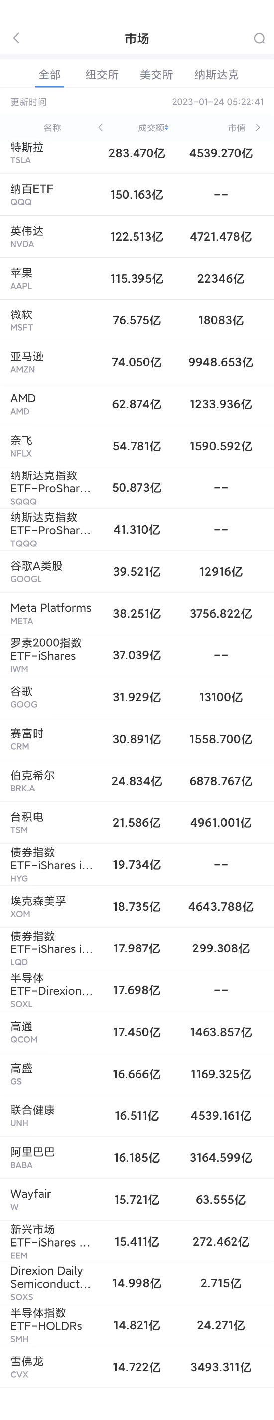 以下为美股当日交易最活跃的20只股票(按成交额):