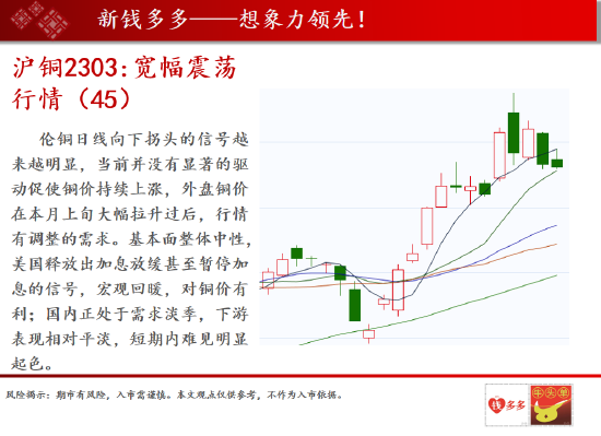 基本面概述:基本面整体中性,美国释放出加息放缓甚至暂停加息的信号,宏观回暖,对铜价有利;国内正处于需求淡季,下游表现相对平淡,短期内难见明显起色。