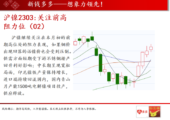 基本面概述:供需方面短期受下游不锈钢排产回升利好影响;中长期呈现宽松局面,印尼镍铁产量保持增长,进口端持续回流国内,国内青山月产能1500吨电解镍项目投产,供应释放。
