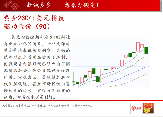操作建议:美元指数短期来看在102附近有止跌企稳的迹象,一旦反弹对黄金价格来说短期利空,金银的技术形态上看明显受到了压制,伦敦现货白银日线已经画出了圆弧顶的态势,黄金日线也是连续回落。