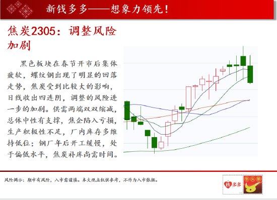 操作建议:黑色板块在春节开市后集体疲软,螺纹钢出现了明显的回落走势,焦炭受到比较大的影响,日线收出四连阴,调整的风险进一步的加剧。