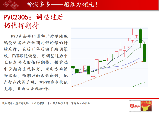 操作建议:PVC从去年11月初开始跟随玻璃受到房地产预期向好的影响持续反弹,农历开年后由于玻璃暴跌,PVC跟随调整,等调整过后中长期走势依旧值得期待。