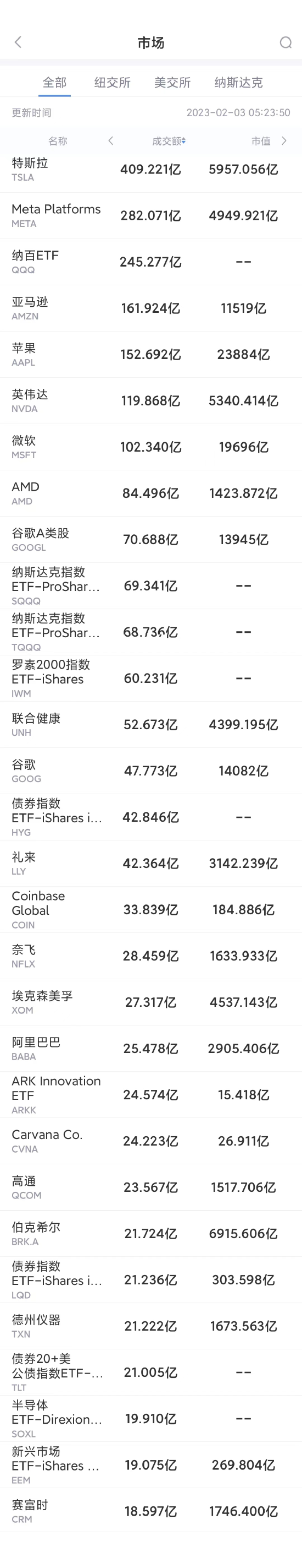 第2名Meta Platforms收高23.28%,成交282.1亿美元。Meta公司去年四季度实现营收321.65亿美元,同比下降4%,但高于分析师平均预估的315.3亿美元;按美国会计准则,净利润46.52亿美元,较上年同期的102.85亿美元大幅下降55%;摊薄后每股收益为每股1.76美元,低于分析师平均预估的2.22美元。但考虑到Meta在本财报期对应用程序系列部门和RealityLabs部门的重组花费了近40亿美元,因此业绩下降并不绝对因为经营原因。