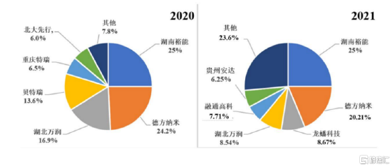根据高工锂电数据,公司2021年在国内磷酸铁锂正极材料领域的市场占有率为25%,磷酸铁锂出货量排名第一。