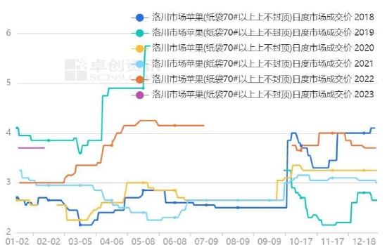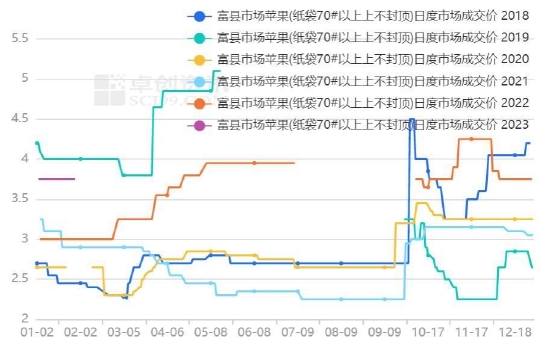 据中果网消息,陕西冷库外地客商大部分还未返回,冷库成交数量有限,客商多按需补货,购销随行。卓创资讯数据显示,1月29日洛川和富县纸袋70#以上成交价分别为3.7元/斤和3.75元/斤,与年前价格相同。