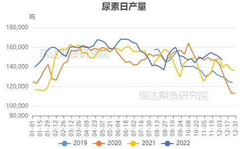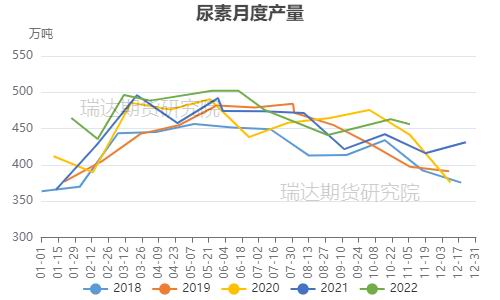 从国内尿素开工情况看,2022年国内尿素企业开工率在近四年来说整体处于中等偏上的水平,全年平均开工率在69.58%,较2010年提高1.29%。从日产量来看,2022年国内尿素平均日产量在15.4万吨,高于2021年全年平均的14.76万吨。高利润刺激下企业的检修计划被不断推迟,上半年尿素供应高位运行,日产量在6月份达到17万吨的最高峰。但之后开始一路走低,8月下旬最低降至13.5万吨左右,亏损压力导致山西部分固定床企业延期复产,夏季高温装置故障频发,加上川渝以及湖北、安徽等地高温影响下企业用电让与民用,多套尿素生产企业受限电影响停车,导致了日产量的持续下行。9月份随着检修以及限电装置的陆续恢复,尿素日产持续上升。但10月份国家重要会议召开,山西地区多数尿素主力企业开始停产,原计划是11月初恢复,但受到环保限产以及疫情影响被不断延后。之后随着检修装置陆续重启回归,尿素日产量开始逐步提升至近四年同期最高。据隆众资讯统计,2022年1-11月,国内尿素累计产量5184.55万吨,同比2021年增加4.98%,预计2023年国内尿素产量同比继续增长。