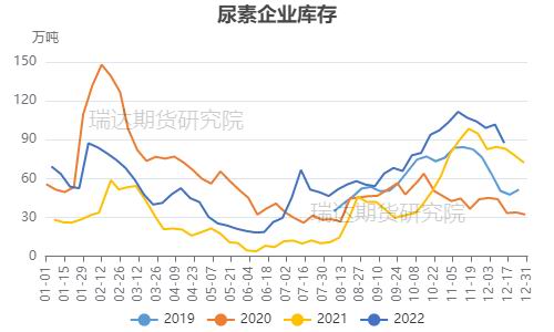 从尿素库存来看,2022年国内尿素企业库存波动较大。上半年整体去库存,且库存水平处于近年来中位,但下半年库存连续增加并一直处于近年最高水平。特别是10月份之后,内蒙和新疆受疫情影响,大量货源无法外发,疆内上游被迫累库,国内尿素企业整体库存累积至110万吨以上的绝对高位,为同期历史新高。目前新疆区域疫情缓解,汽运发运正常,火运陆续恢复中,预计将会有大量疆内货源寻求出疆,对内地行情冲击仍不容小觑,关注疆内货源出疆情况。2023年上半年需求旺季带动下,整体库存或有望去化,但下半年在新增供应冲击下,预计仍将进入季节性累库周期。