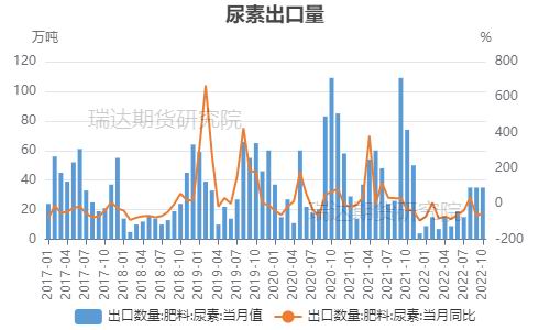 出口方面,海关数据显示,2022年1-10月我国出口尿素194万吨,同比减少59.16%。2021年10月份开始,国内法检政策大幅限制了尿素的出口,但在高利润驱动、印度招标、国际援助以及其他因素影响下,国内尿素出口阶段性增加也时常发生。2022年下半年,印度的招标和巴基斯坦的援助需求增量在100万吨以上,因此下半年的尿素出口量明显高于上半年,但2022年国内尿素出口总量同比2021年大幅下降。