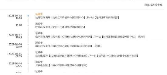 快递单号查询发现,该1月14日下午4点多,快件被北京亚运村邮政支局收寄,4天后到达牡丹江市寄递事业部网路中心,当天中午1点多,该快件发往牡丹江市西安揽投部。至今,快递信息未更新。