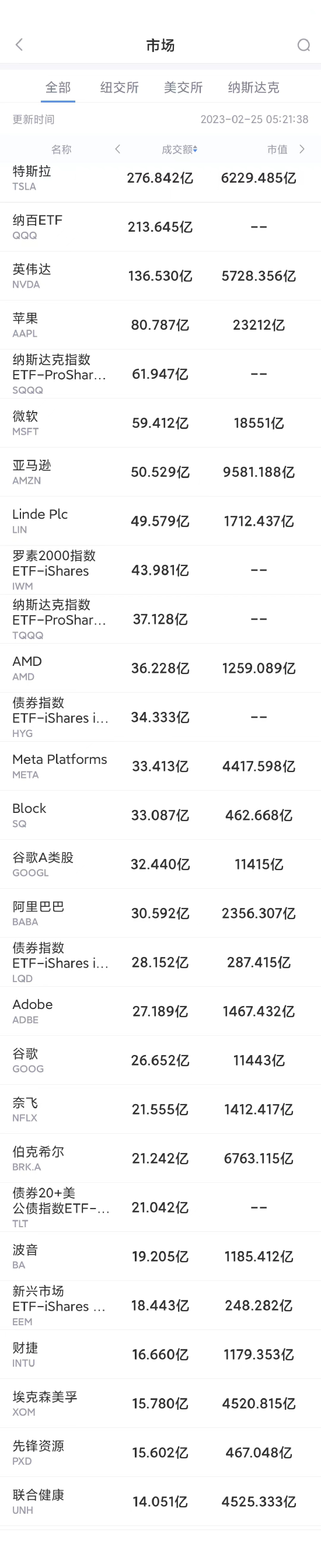 以下为美股当日交易最活跃的20只股票(按成交额):