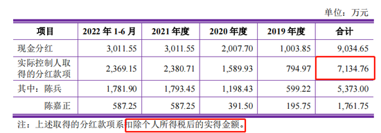 此前版本的招股书显示,文依电气在2019年分红1003.85万元。合计来看,文依电气4年分红9034.65万元,陈兵父子扣税后拿到7134.76万元。