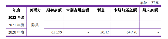 2019年,陈兵占用公司资金623.59万元。2020 年末,文依电气从陈兵处收回被占用的全部资金及相应利息。