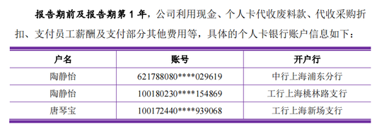 文依电气还存在利用现金、个人卡代收废料款、代收采购折扣、支付员工薪酬及支付部分其他费用等情形。问询函恢复文件中,文依电气表示,报告期内主动终止了现金、个人卡收支行为,存放于个人卡内的资金已全部转回公司账户。
